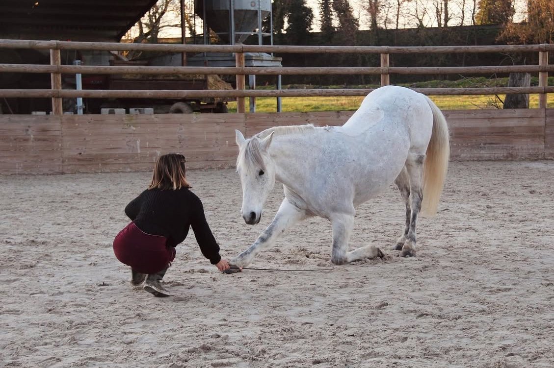 Je suis ressortie de ce cours avec des étoiles pleins les yeux. Tu es juste, clair, franche, une méthode que je trouve finalement hyper logique pour l’apprentissage des chevaux bien que déstabilisante pour ma part au début. Tu as pu me donner tellement de clés pour les différents tours de spectacles ainsi que la liberté. Maintenant l’objectif est de retransmettre ça sur ma ponette qui m’est confier. En un mois, il y a déjà une belle amélioration. Une jument qui devient plus actrice de sa séance et qui y met encore plus de volonté. Ta méthode reste adaptable ce qui me permet a la fois de garder ma façon de faire tout en l’améliorant. Hâte de continuer d’évoluer et encore 1000 merci a toi d’avoir accepté de me prendre en cours et de m’avoir prêté tes petits protégés. Un rêve de petite fille qui a pu se réaliser.