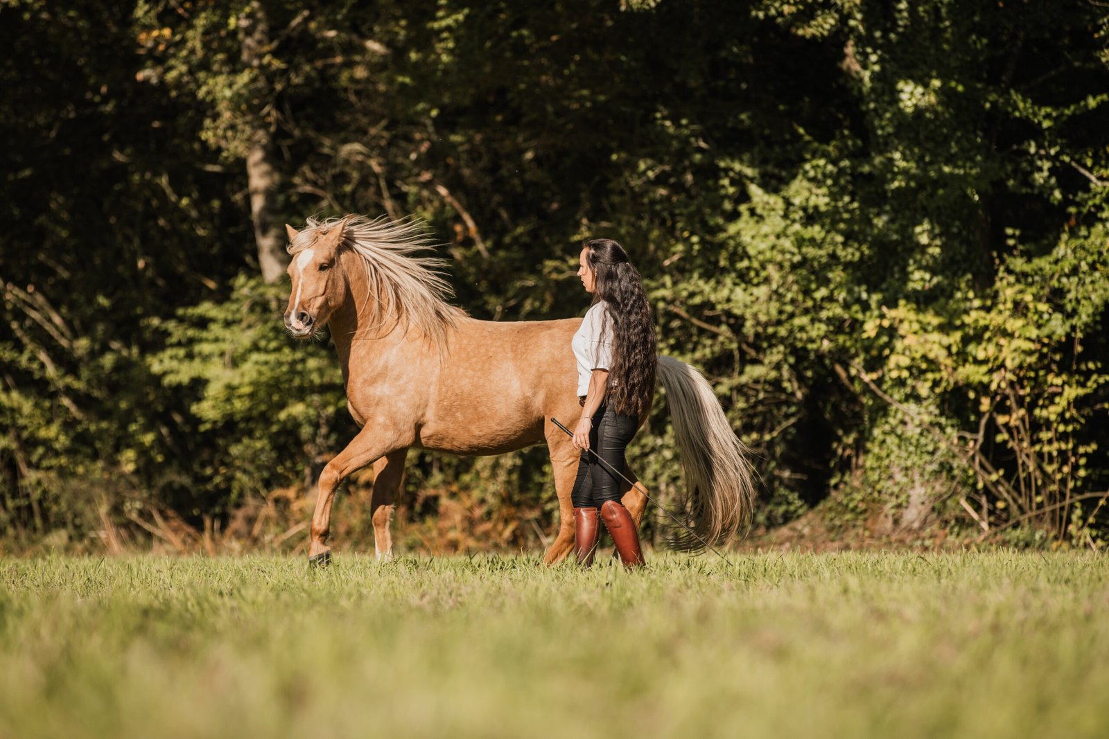 J’ai eu la chance de pouvoir emmener mon poney chez Anne-Gaëlle pendant six mois en pension travail, où elle l’a formé à son approche, puis elle m’a formée à mon tour afin que je puisse continuer le travail avec lui. J’ai ensuite suivi la formation pour poursuivre sur notre lancée et continuer d’évoluer à distance. L’approche d’Anne-Gaëlle a révolutionné ma relation avec Best. Aujourd’hui, nous réalisons mes plus grands rêves, et ce que je pensais inaccessible est devenu réel. Je ne remercierai jamais assez Anne-Gaëlle pour tout cela. Son approche permet vraiment de développer une relation solide, avec de vraies fondations. Si c’était à refaire, je le referais cent fois !